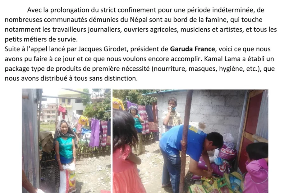 3 villages: Hemza (Kaski), Bathuleshwor, Swainza Total families: 97 Ethnies principales: Gangharwas (musiciens comme Ranjan – sponsorisé par Ecoliers du Népal depuis l’enfance), Sunwar. Mais bien sûr mélangées dans les villages, sans discrimination. Distribution : Masques Riz Pommes de terre Lentilles Soya beans Savon Huile végétale Sel.